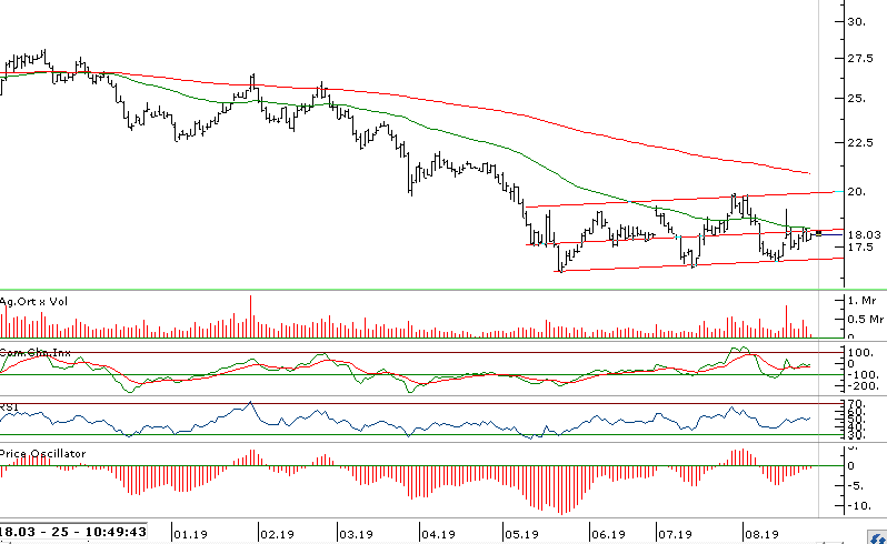 - ASELS hissesi 17,00-20,00 fiyat aralığındaki paralel kanal içerisinde hareket etmeye devam ediyor