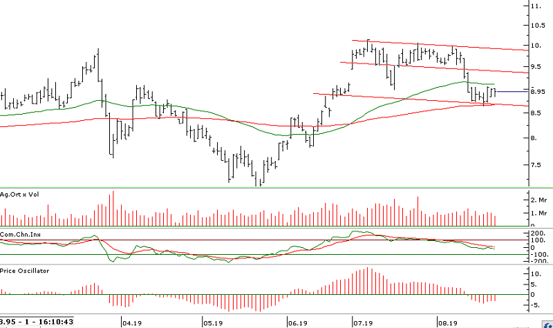 - Hisse şu anda 9,02 ile8,75 fiyat aralığında yön arayışını sürdürüyor