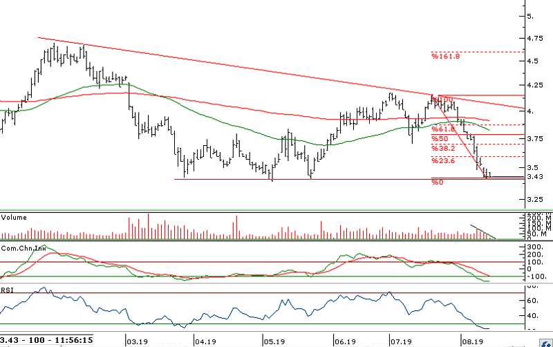 - Hisse Nisan ayından buyana 4. defa 3,43 seviyesindeki desteğini test ediyor