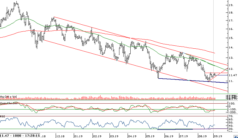 - Hissede RSI indikatöründe grafikte görüldüğü üzere yaşanan pozitif uyumsuzluk hissenin ilk aşamada 12,25 seviyesine kadar yükselme ihtimalini arttırıyor